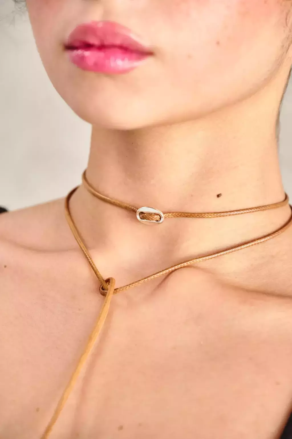 Chocker para cruzar y anudar en tira de cuero con dije de fantasia.