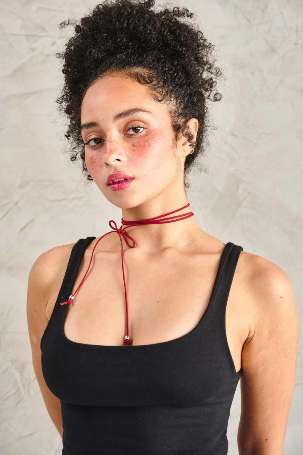 Chocker de gamuza para cruzar y atar, con terminales plateadas.
